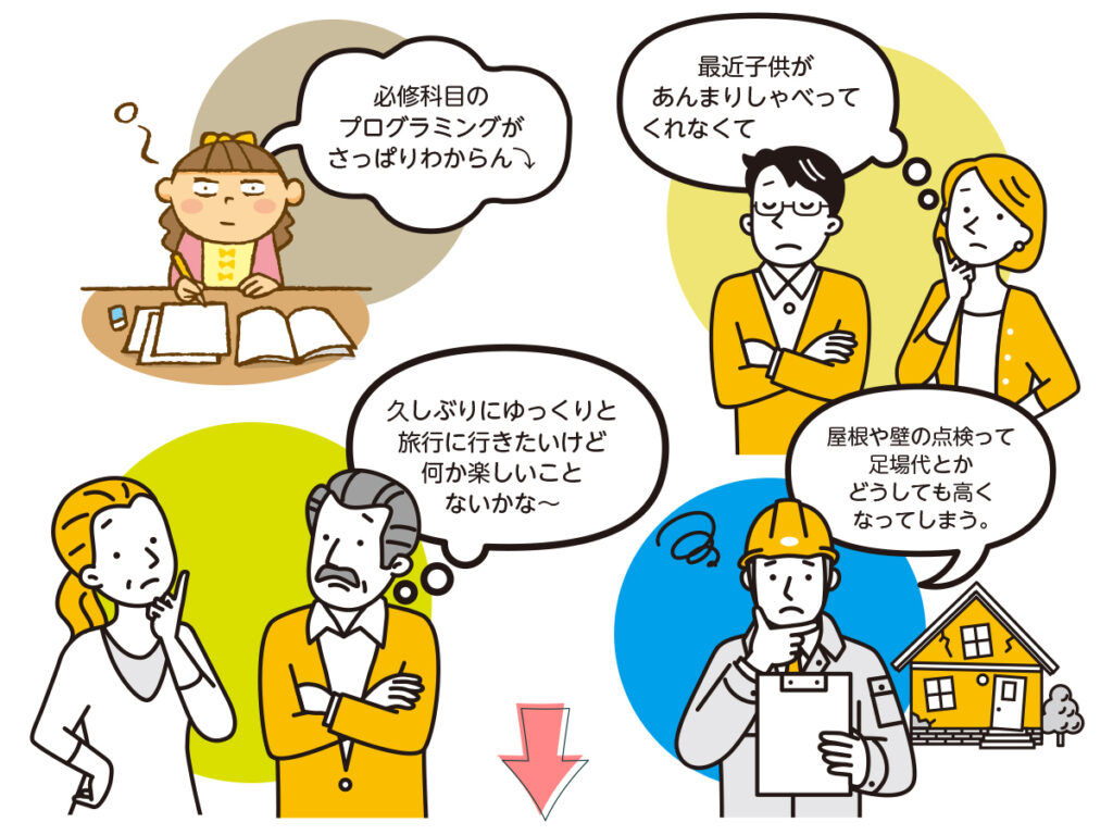 屋根や屋上、測量、インフラ整備などの危険な場所をドローンが点検・撮影。足場や重機のコストを削減してこれまでより安く仕事が請負できます。危険が減るので家族も安心です。